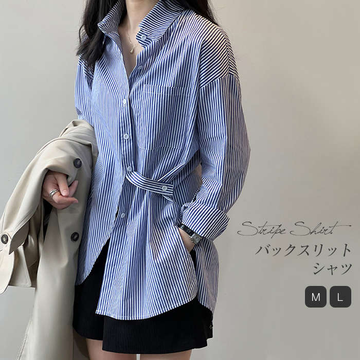 シャツ ストライプ レディース 長袖 お洒落 オフィス ブラウス 春 トップス 羽織り きれいめ お洒落 大人 カジュアル シンプル 前開き 体型カバー オールシーズン 大きいサイズ ゆったり 春秋