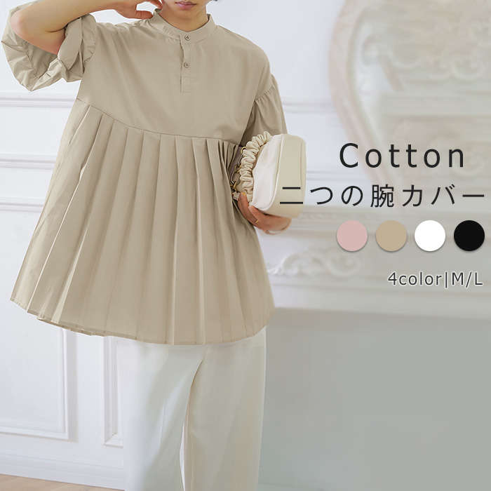 ブラウス レディース シャツ 春夏 薄手 オフィス ボリューム袖 羽織り きれいめ コットン 棉 トップス 七分袖 五分袖 無地 ネック エレガント 洗える 切り替えブラウス とろみ 春 夏 ホワイ
