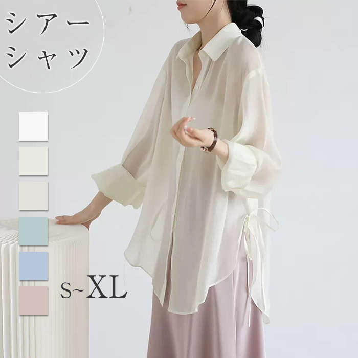 シアーシャツ レディース 透け感 長袖 ブラウス シアー シャツ 春 夏 オーバーサイズ シースルー シースルー ビッグシルエット ゆったり 清涼 羽織トップス 体型カ バー 冷房対策 きれいめ おし