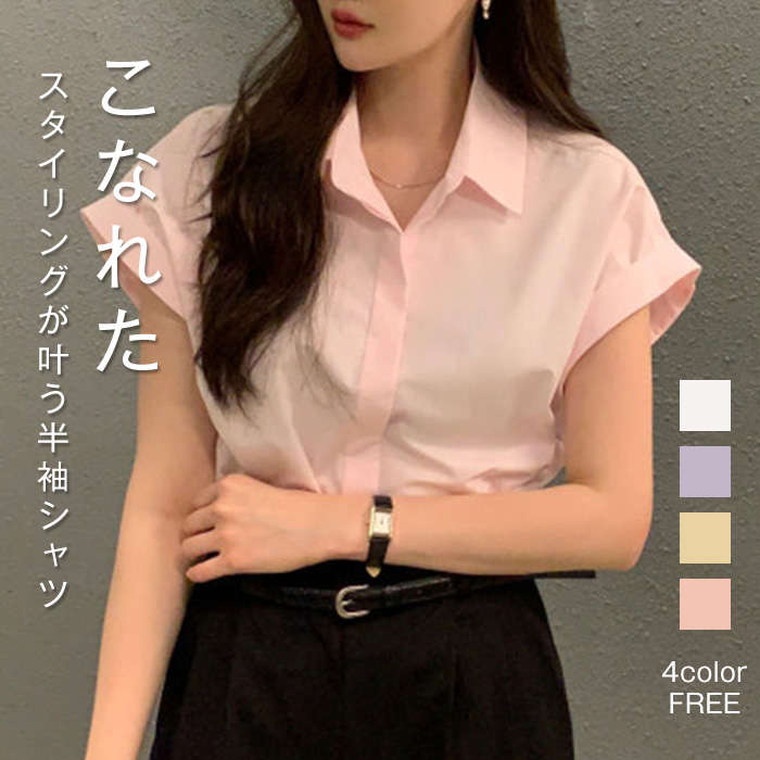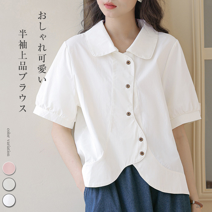 シャツ レディース 半袖 折り襟 白 夏 お洒落 ブラウス 前開き オフィス トップス きれいめ 薄手 透け感 大人 カジュアル シンプル 体型カバー 大きいサイズ ゆったり 通勤 無地 20代 30