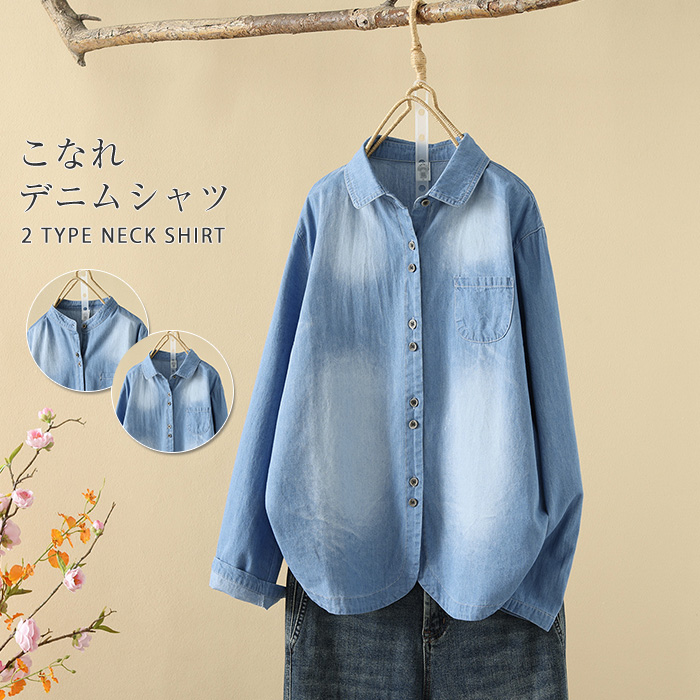 シャツ デニム レディース 長袖 トップス ブラウス ゆったり きれいめ お洒落 春 夏 秋 デニムシャツ ショート丈 アウター 羽織り カーディガン 通勤 カジュアル 体型カバー シンプル 薄手 無
