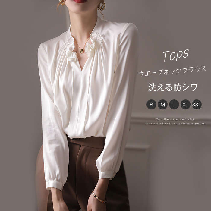 大人気~ オフィスカジュアル ウエーブネックブラウス 大きいサイズ Blouse S~2XL ビジネス 七五三 セレモニー 服装 ママ 母親 母 他と被らない 二次会 七五三 お宮参り ♪