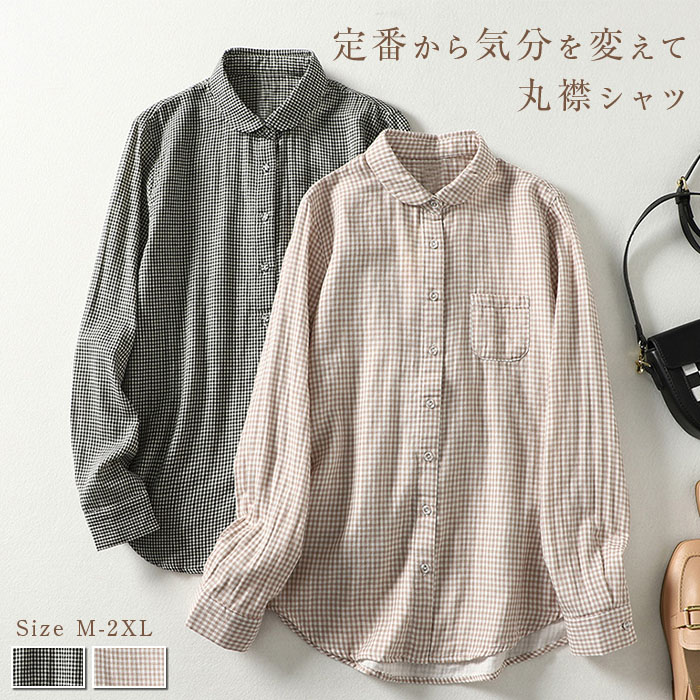 シャツ レディース ブラウス 長袖 おしゃれ ダブルガーゼ ガーゼシャツ 春秋 折り襟 トップス 羽織 ゆったり 体型カバー きれいめ 抜き襟 オーバーサイズ フォーマル オフィス 通勤 着やせ 前開