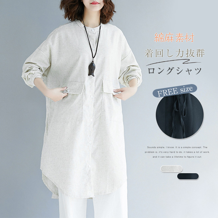 シャツブラウス 半袖 白シャツ チュニック 秋 体型をよくカバー ゆったり ロングチュニック 綿麻 春 夏 シャツワンピース ふんわり 着心地よい