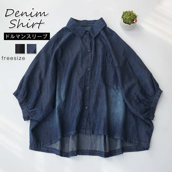 デニム 無地 ドルマン 半袖 レディース 柔らか ドロップショルダー ゆったり オシャレ カジュアル 春 夏 秋 ワイドシルエット 男女兼用 メンズ ストリート