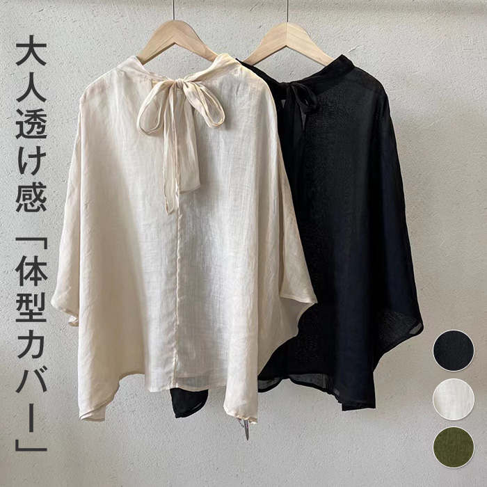 甘すぎない大人のリボン使い♪後ろリボンプルオーバー 夏 春 トップス カジュアル キレイめ シンプル 無地 トレンド 着痩せ 体型カバー