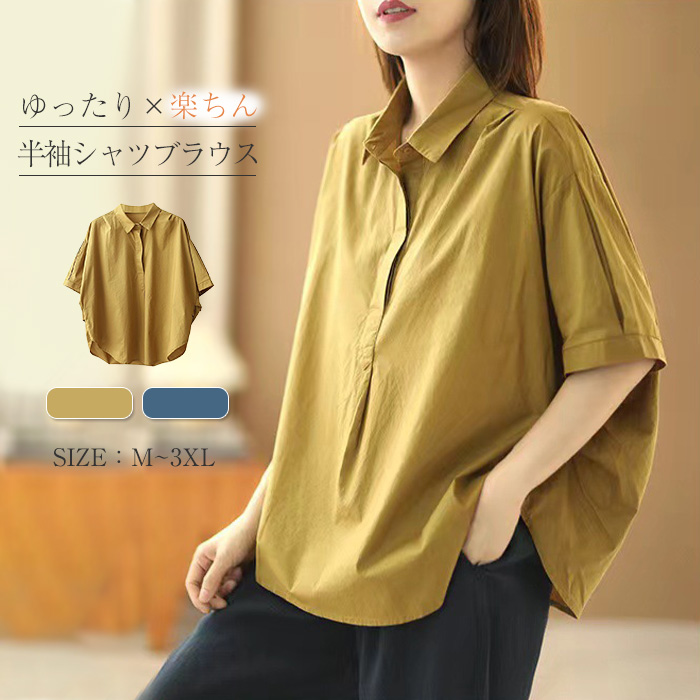 さらりと涼やかな着心地 デイリーで着こなしやすいシャツ ブラウス トップス 半袖 気質 上品 柔らかい ゆるシルエット カジュアル モード カジュアル