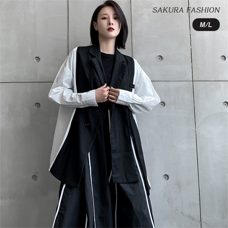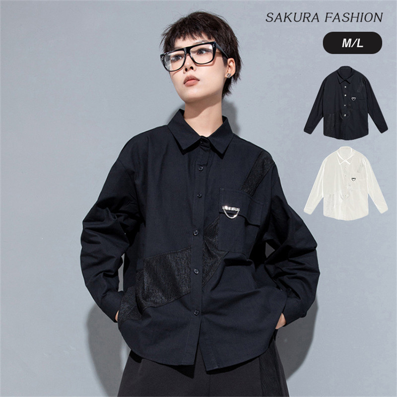 シャツ レディース トップス ブラウス シャツブラウス 長袖 綿 ゆったり 春秋 羽織り 個性派 アシメトリーシャツ ブラック 白 黒 ホワイト M L