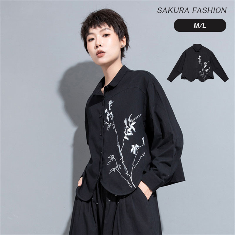 ブラウス シャツブラウス レディース トップス シャツ 羽織り 羽織 長袖 長そで 綿混 ゆったり 秋 プリントブラウス