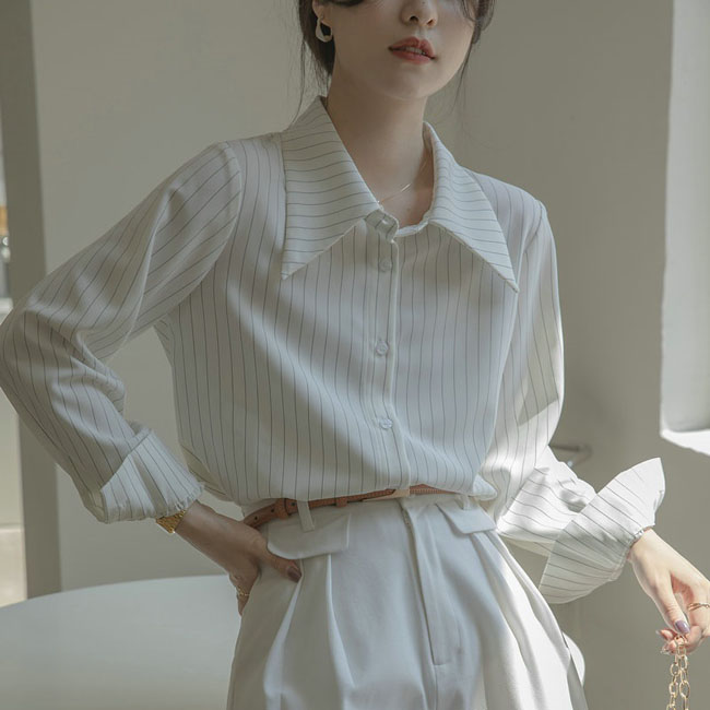 長袖 ブルー トップス カラーシャツ ブラック カジュアル ブラウス ストライプシャツ ストライプシャツ ストライプ シャツ 30代 レディース 通勤 きれいめ シンプル 大人 20代 OL 40代