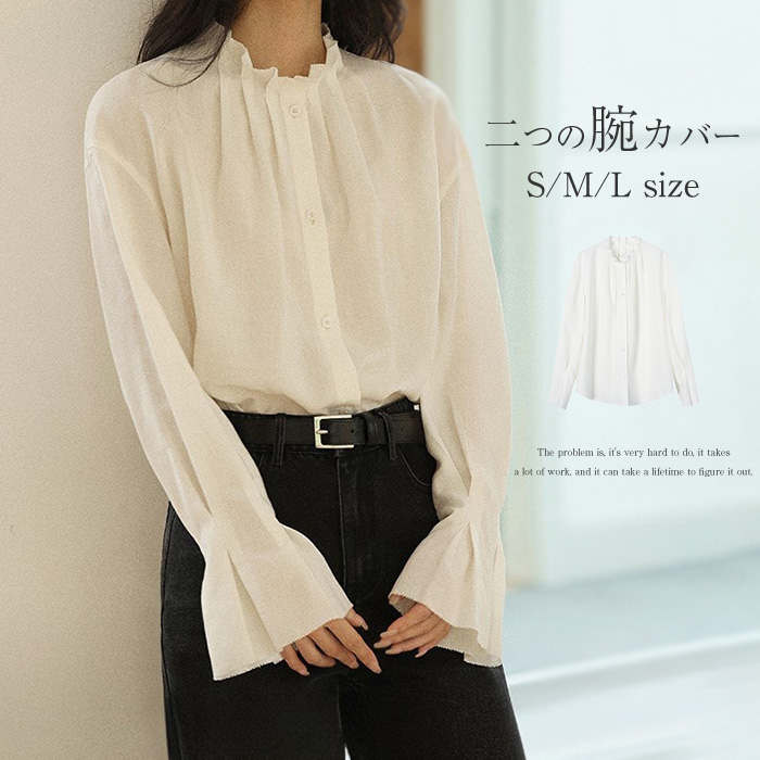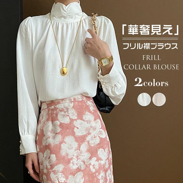 ブラウス フォーマル 入学式 オフィス レディース ハイネック シャツ トップス 白ブラウス 長袖 春秋 おしゃれ きれいめ 大人可愛い カジュアル 体型カバー 立ち襟 フリル襟 通気性 お呼ばれ 通