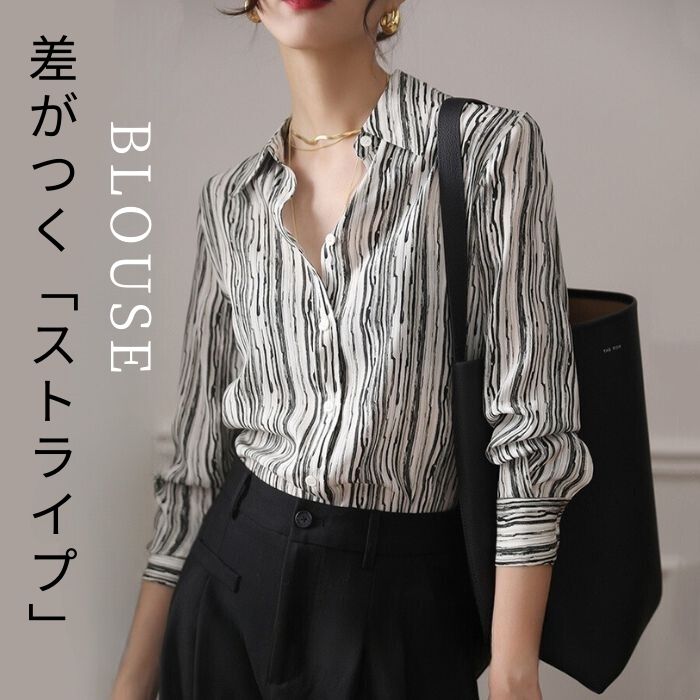 ブラウス シャツ トップス レディース 長袖 襟付き ストライプ 薄手 春 夏 秋 インナー 前開き フォーマル 羽織り 大きいサイズ おしゃれ プリント 事務服 オフィス スーツ カジュアル ゆった