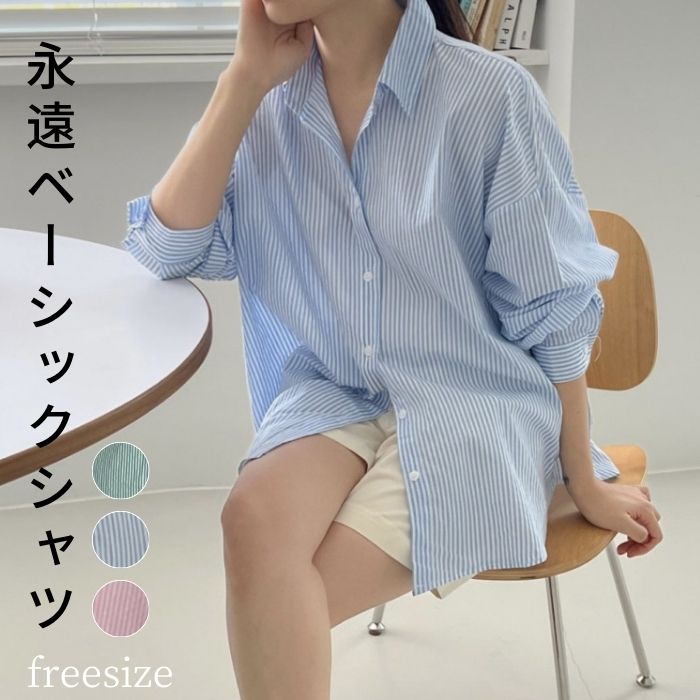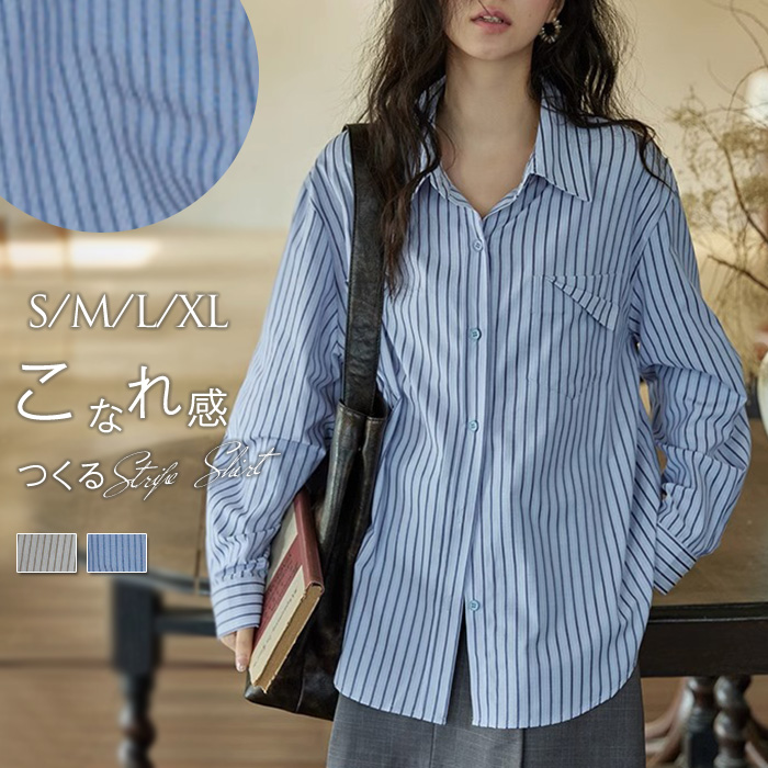 これからの季節快適 取り入れるだけでトレンド感もアップするオーバーサイズストライプシャツです♪レディースファッション トップス シャツ ブラウス