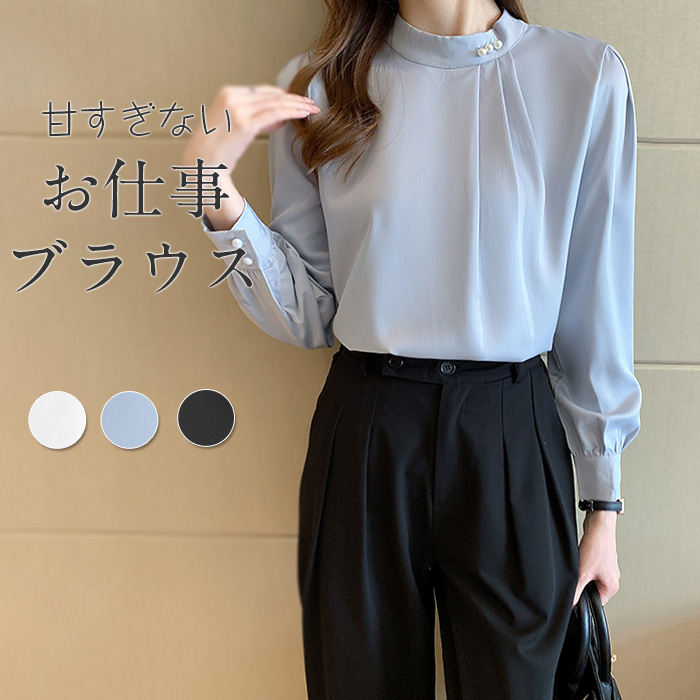 ブラウス レディース 長袖 ノーカラー シンプル タックブラウス ベーシック セレモニー フォーマル ビジネス オフィス 通勤 上品 入園式 卒園式 入学式 卒業式
