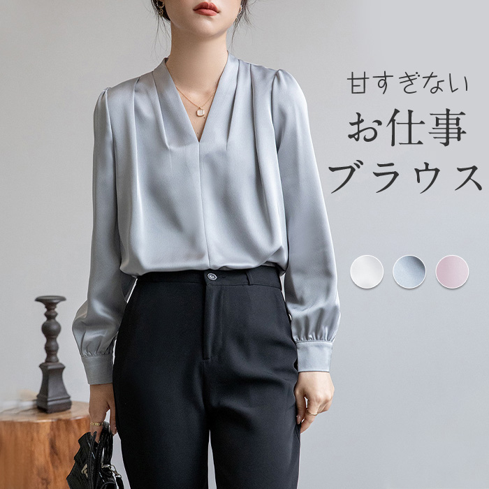 ブラウス トップス シャツ レディース Vネック 長袖 二の腕カバー フォーマル セレモニー ビジネス オフィス 通勤 入園式 卒園式 入学式 卒業式 薄手