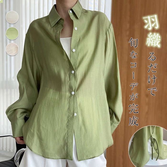 ふんわり 大人の透け感~ シアーブラウス Sheer Shirt 春 夏 グリーン 緑 キャメル アイボリー 普段着 通勤 オフィス デート リゾート 着回し 冷感 UV 速乾 涼しい 清涼感 ♪