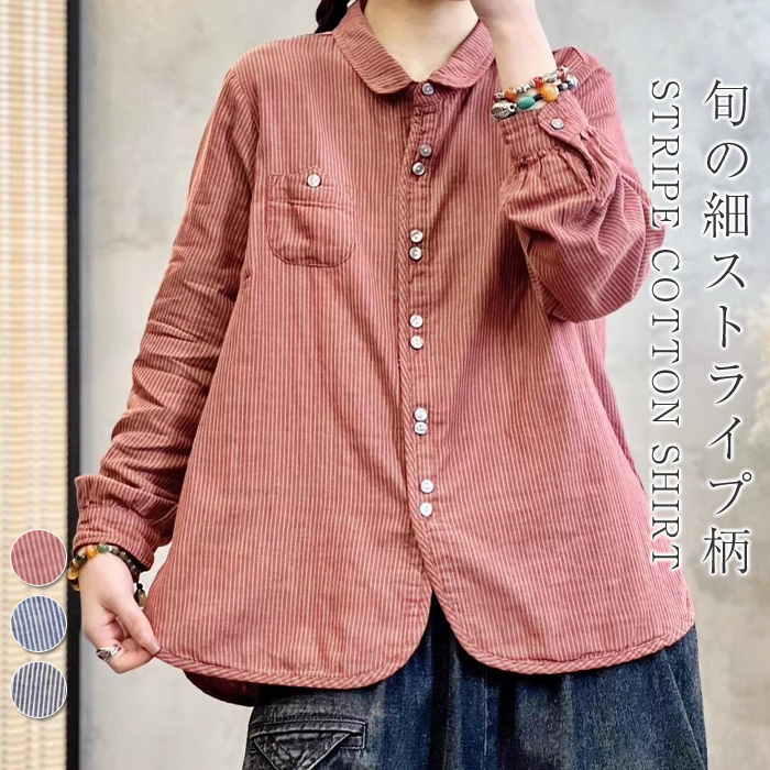 シャツ レディース 長袖 ストライプ がーせ ブラウス 入学式 トップス オフィス 長袖 折り襟 春秋 おしゃれ ゆったり きれいめ カジュアル 体型カバー お呼ばれ 通勤 通学 卒業式 卒園式 入園