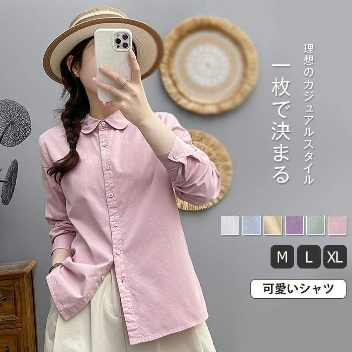 シャツ 長袖 レディース ブラウス 丸襟 お洒落 トップス 綿 白シャツ インナー 入学式 オフィス 白ブラウス 長袖 春秋 おしゃれ きれいめ カジュアル 体型カバー お呼ばれ 通勤 通学 卒業式