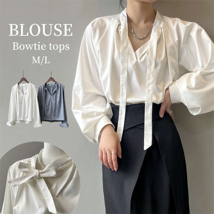 2wayボウタイブラウス ホワイト 白 ブルー Bowtie blouse M L 春夏 秋冬 オールシーズン お宮参り 二次会 パーティー 女子会 お食事会 入学式 卒業式 入園式 卒園式 母 ママ