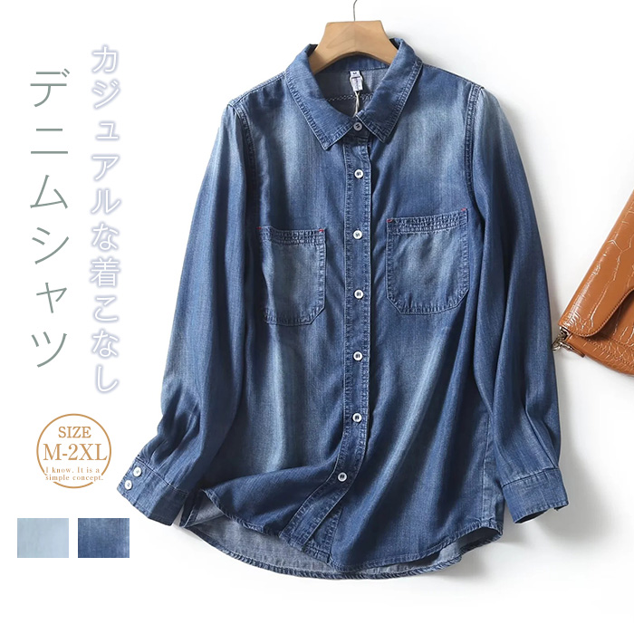 ルーズなシルエットのカジュアルなデニムシャツ これ一枚でお洒落なメンズライクなコーデに♪レディースファッション トップス シャツ ブラウス
