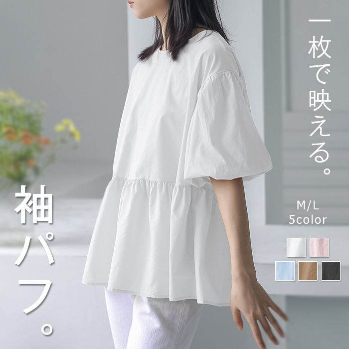 ふんわり袖がかわいいプルオーバートップス♪ おしゃれ 上品可愛い 体型カバーレディースファッション トップス シャツ ブラウス