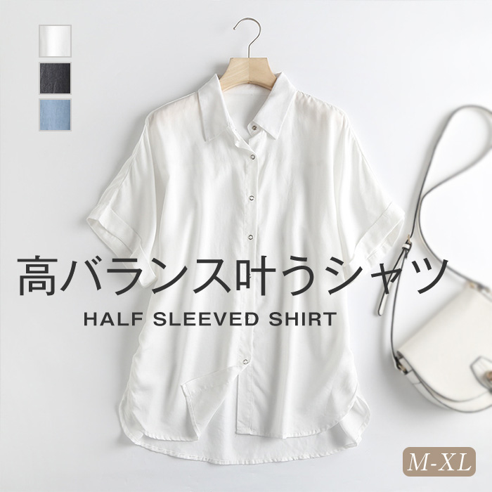 シャツ レディース デニム 夏 半袖 薄手 ブラウス 白シャツ デニムシャツ トップス ゆったり 体型カバー カジュアル おしゃれ 可愛い きれいめ コーデ 形態安定 無地 シンプル 通勤 オフ