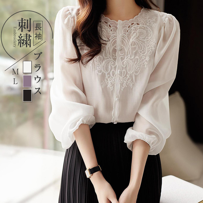 刺繍 ブラウス レディース 長袖 シャツ レディースファッション トップス シャツ ブラウス