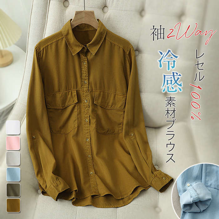 袖2WAY クール冷感 シャツブラウス ホワイト ピンク グレー ブルー カーキ 白 春夏 プレゼント 贈り物 ギフト 母の日 誕生日 大きいサイズ S~XL カジュアル お洒落 大人 ♪