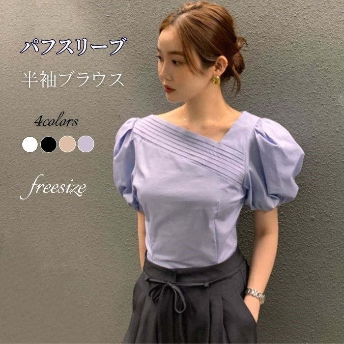レディース トップス ブラウス パフスリーブ 無地 韓国 ぽわん袖 食事会 女子会 就活 通勤 仕事 お出かけ 遊び