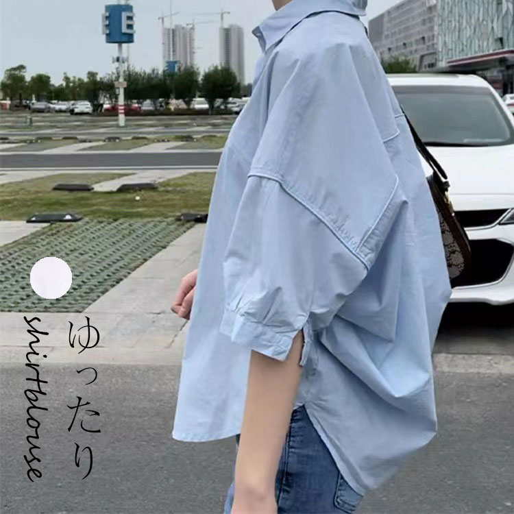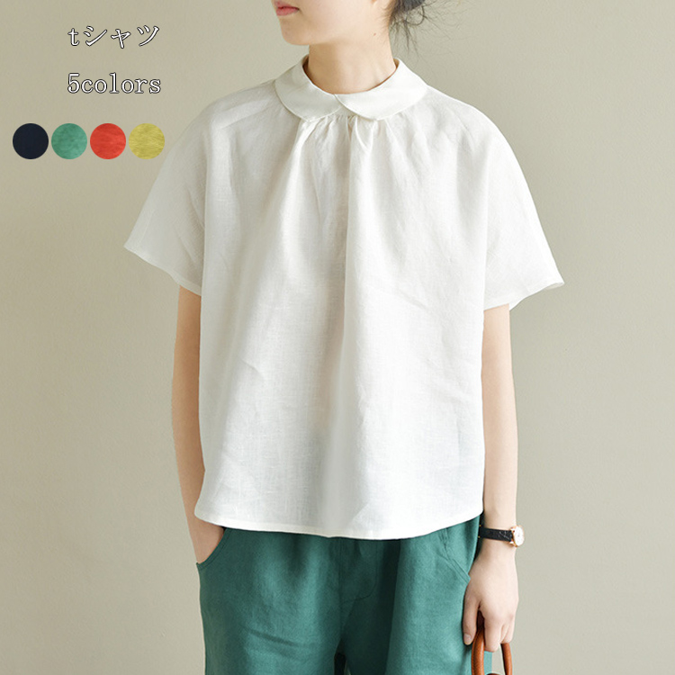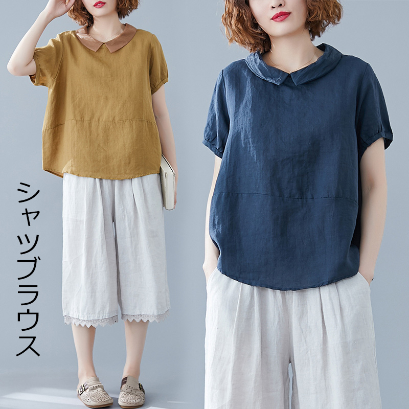 夏シャツ Tシャツ ブラウス 夏 夏服 綿 薄手 プルオーバー レディース トップス 半袖 コーデ 体型オーバー オシャレ きれいめ カジュアル風 ゆったり