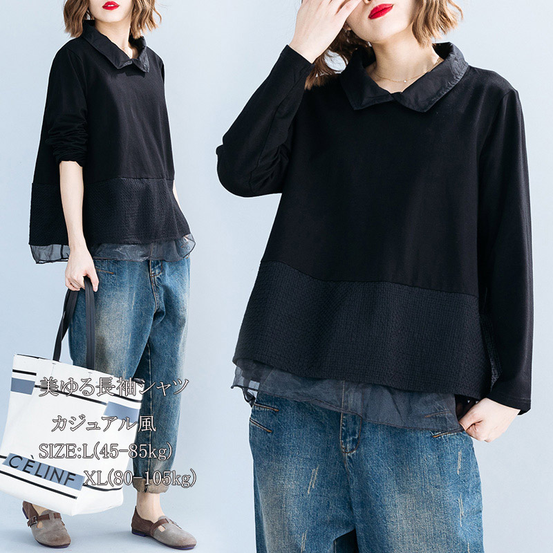 シャツ シャツブラウス トップス ブラウス プルオーバー レディース ショート丈 フェイクレイヤード 長袖 無地 折り襟 スプライス デザイン チュール ゆったり 春