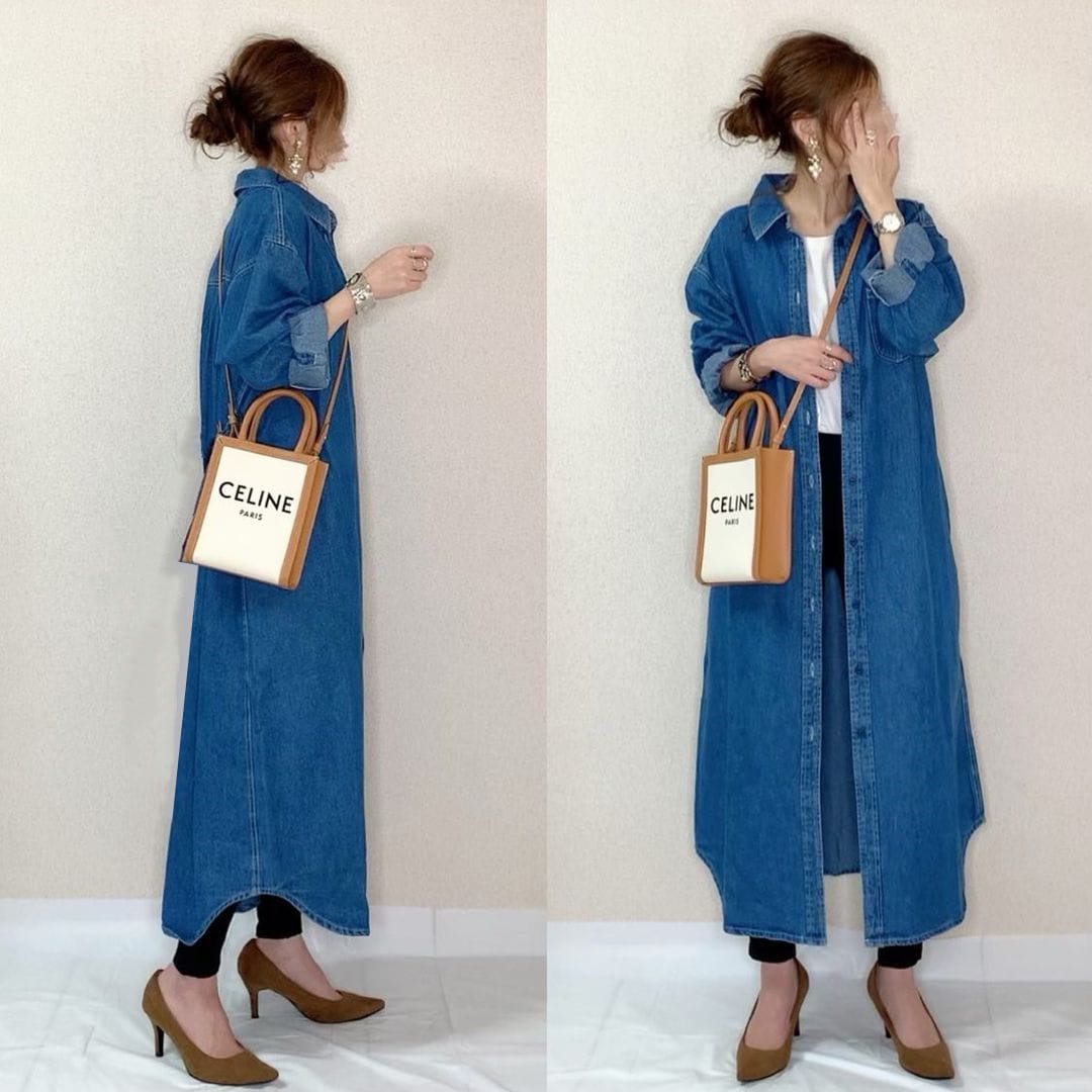 デニムワンピース 秋 コーデ シャツ ロング トップス ボタン ワンピ 前開き 襟付き カジュアルレディースファッション トップス シャツ ブラウス