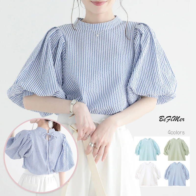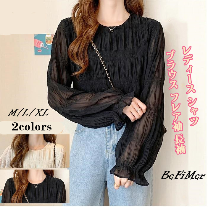 シフォンブラウス シアーブラウス ボリューム袖