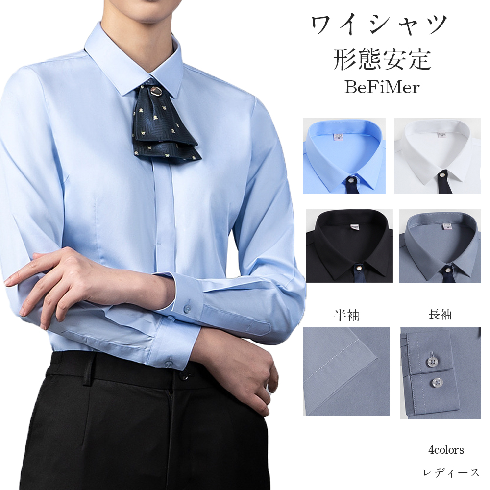 汗染み防止 ワイシャツ レディース 長袖 ビジネス 立体縫製 超速乾 抗菌防臭 超微細綿 形態安定 yシャツ レギュラー 無地 ドレスシャツ 1点