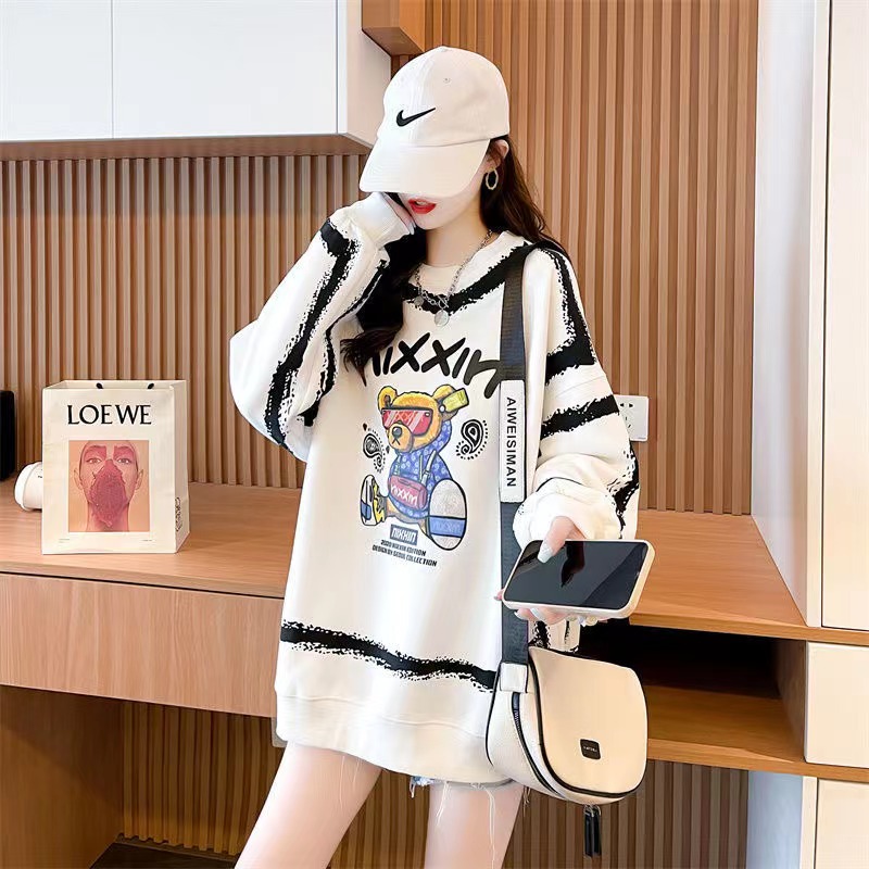 レディース トレーナー 春秋 トップス 長袖 薄手 クマ柄 英文字 丸首 ゆったり 可愛い ホワイト ブラック パープル 2 028