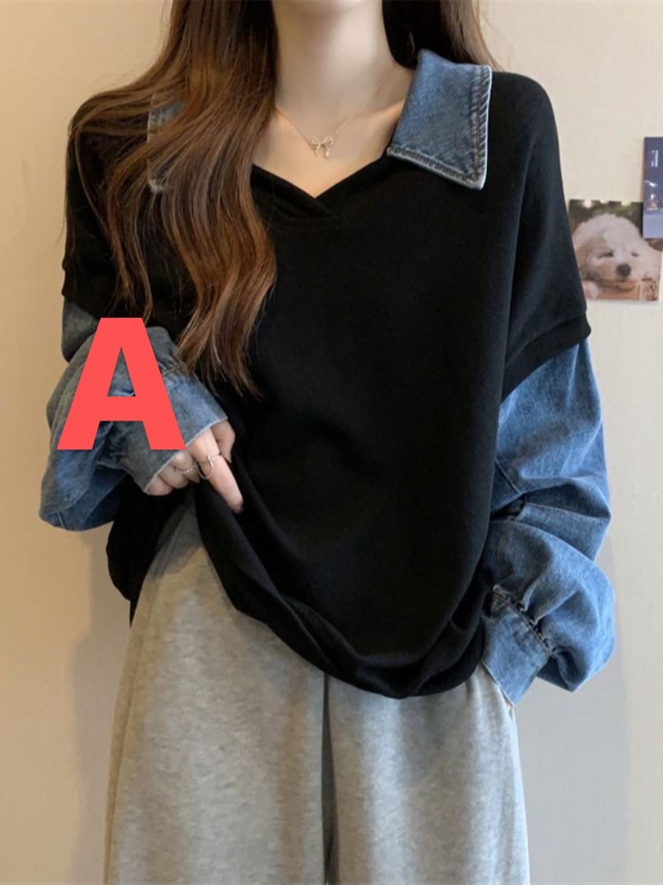 トレーナー レディース 重ね着風 異素材切り替え 長袖 ネック フレアレディースファッション トップス スウェット トレーナー