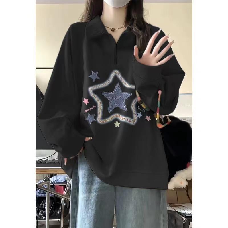 トレーナー 春秋 オーバーサイズ レディース プリント 星柄 春秋 秋服 春服レディースファッション トップス スウェット トレーナー