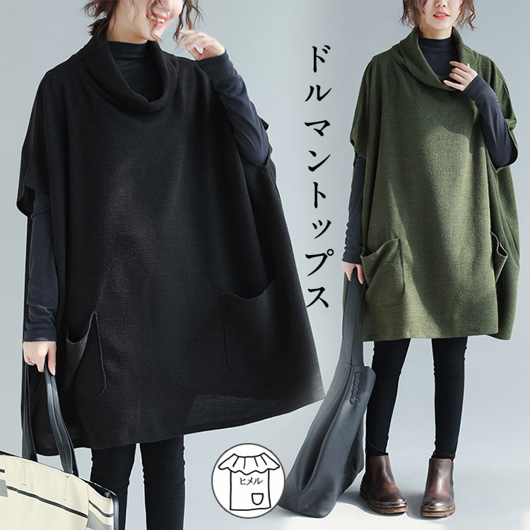 チュニックワンピース 膝上 ゆったり オーバーサイズ 大きめ ゆったり リラックス 体型カバー ポッチャリ ドルマンスリーブ タートルネック 秋チュニック ノースリーブ 30代 40代