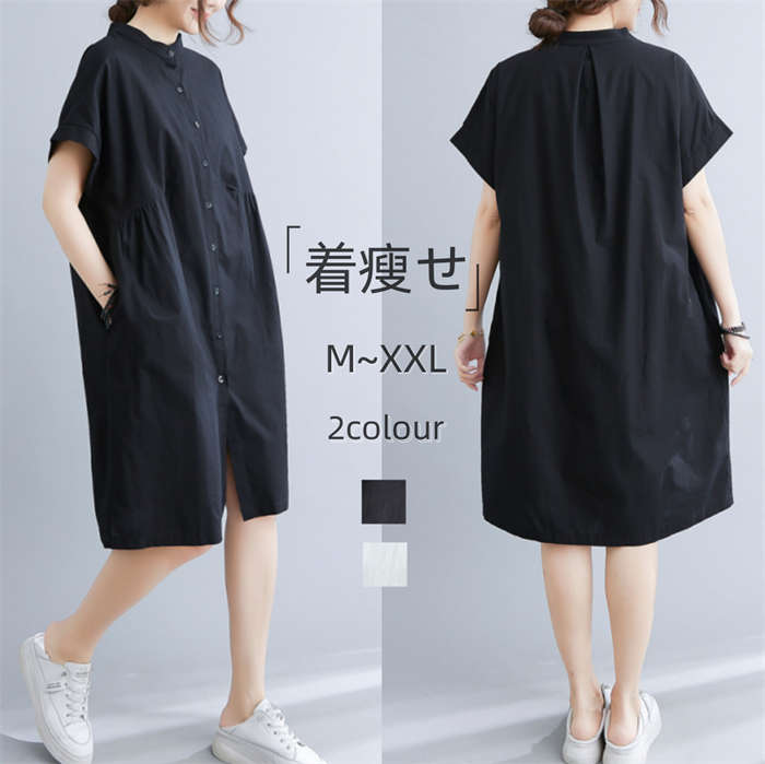 大人可愛いチュニックワンピ デザイン マキシ ロング ひんやり 通気性がいい オフホワイト ブラック フレアワンピ