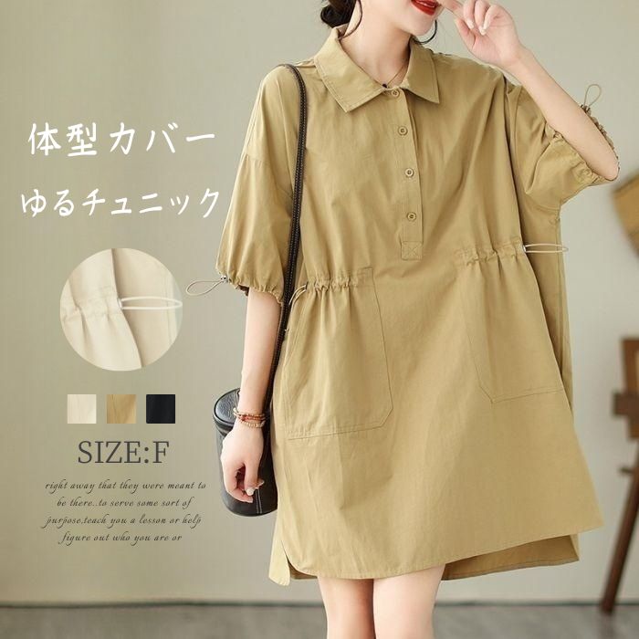 チュニック レディース レディース 春夏 トップス ゆったり 体型カバー 無地 ロングシャツレディースファッション チュニック