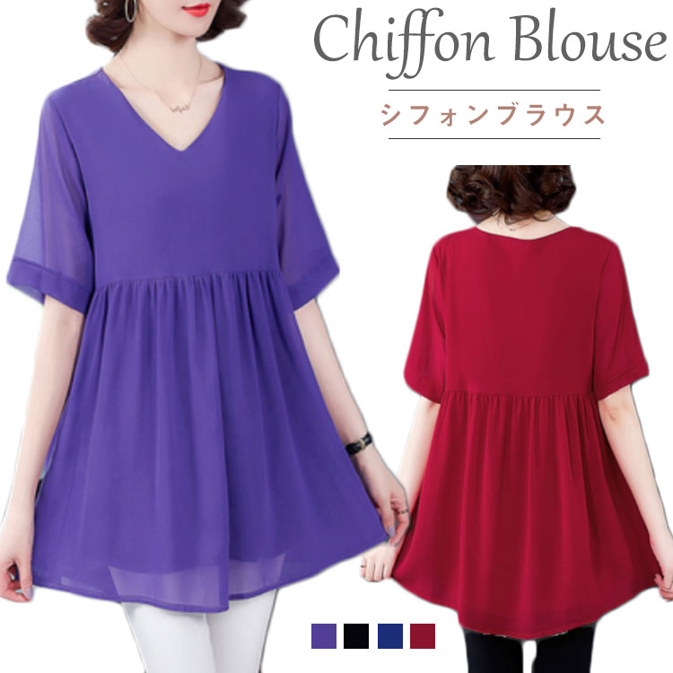 シフォン ブラウス チュニック 着痩せ レディース チュニック トップス 無地 大きいサイズ Aライン 長袖 チュニック シフォンブラウス フリル ブラウス トップス フェミニン