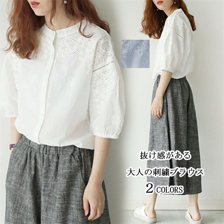 抜け感があるシャツブラウス カットソー シャツ 五分袖ブラウス デザイン 着痩せ きれいめ トレンド 通勤 通学
