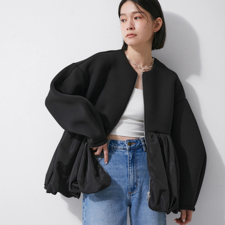 トレーナースウエットレディースパーカーボリューム袖 ショートビッグシルエット長袖ゆったりカジュアル大きサイズ着痩せ 春秋冬 2345