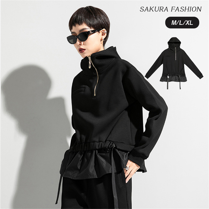 パーカー レディース トップス スエット トレーナー 長袖 綿混 異素材 ゆったり 秋 ハーフジップ フーディー