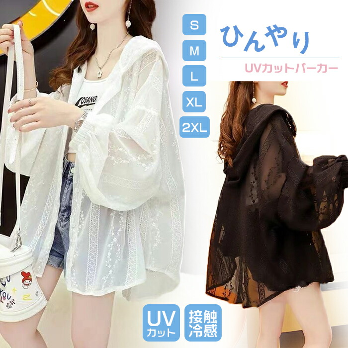UVカット パーカー レディース レース シースルー 日焼け止め服 夏服 トップス 羽織 フード付き 紫外線対策 UV対策 冷房対策 OL オフィス 通勤 通学