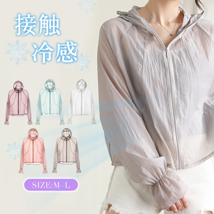 透け感のある女性らしいシースルーパーカー♪ お出かけやレジャー、リゾートの際の紫外線、冷房対策にもピッタリ