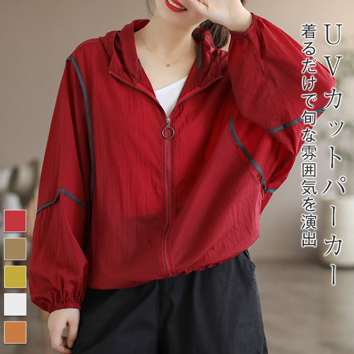 全6色 UVカットパーカー 大きいサイズ M~XL 春夏 春秋 アイボリー パーブル ブラック グレー ワインレッド ベージュ 黒 白 灰色 プレゼント 贈り物 ギフト 誕生日 母の日 ♪