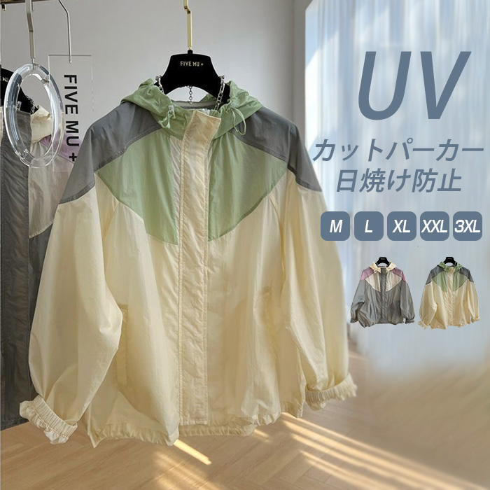 6サイズ展開 UVカット パーカー 春夏 大きいサイズ S~3XL 体型カバー 二つの腕カバー トレンド おしゃれ 大人かわいい 20代 30代 40代 50代 日焼け止め UV対策 冷房対策 ♪