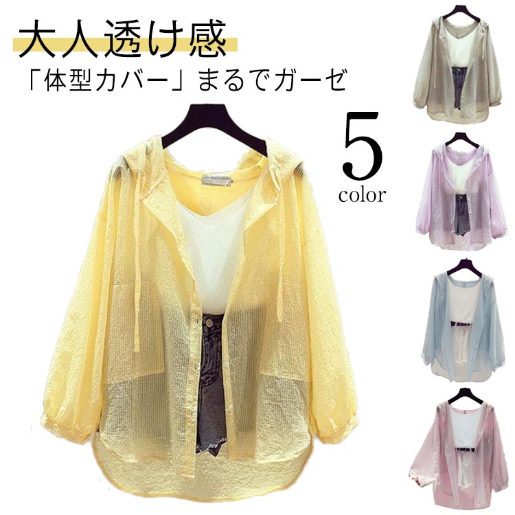 長袖 春夏 ボリューム シアー 大人 ブルゾン コート アウター シアー素材 パーカー シアー ブルゾン ホワイト ベージュ ブラック 長袖 おしゃれ レディース