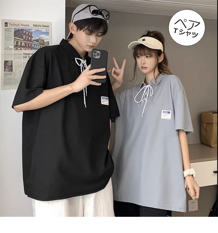 ペア 夫婦 ポロシャツ 半袖 カップル ペアtシャツ大きいサイズビック BIG ゆったり 春夏レディースファッション トップス ポロシャツ